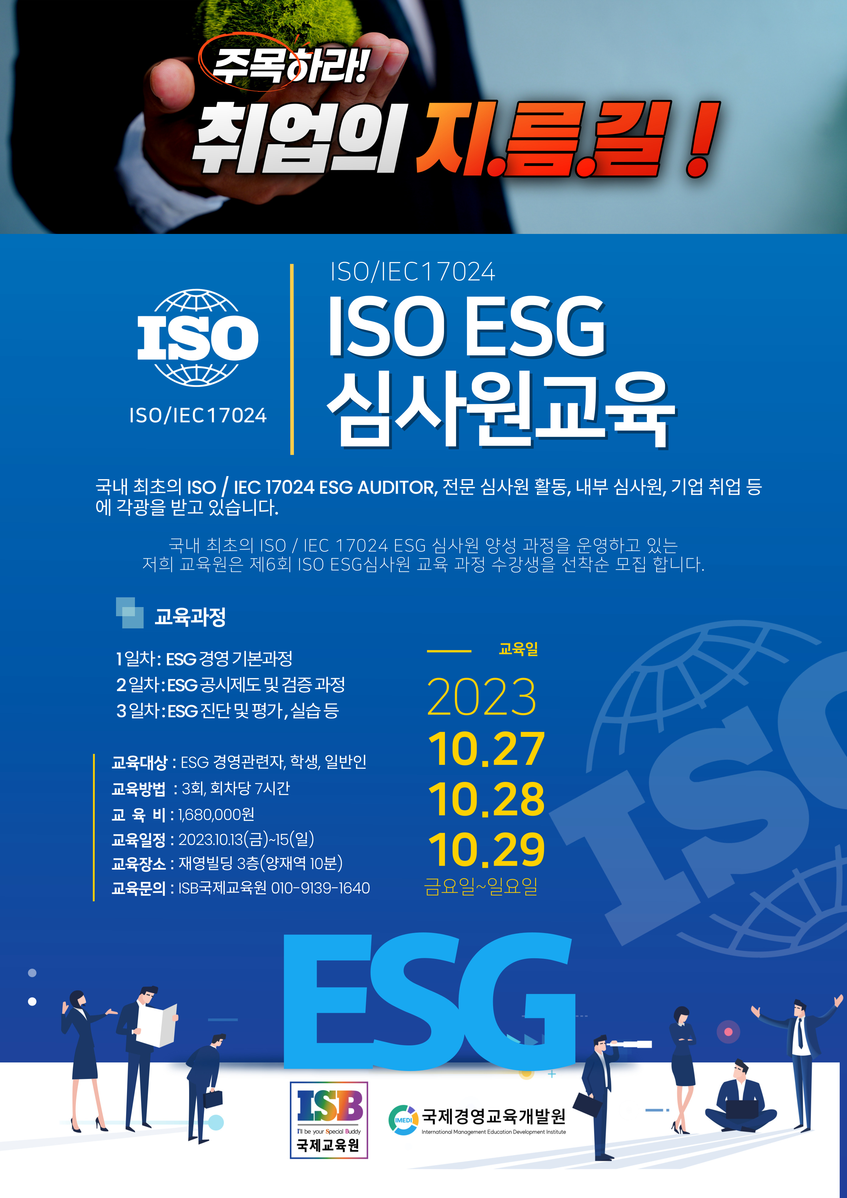 | 제7회 ISO ESG 심사원 국제자격증 응시하세요~!!! (11) | 2023.09.24 |