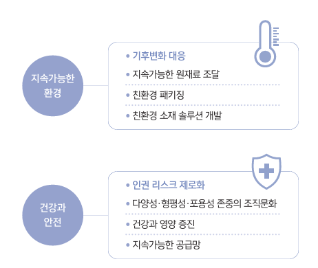 CJ제일제당은 ESG 리스크 저감단계를 넘어 제품·서비스의 ESG가치를 확대하고, 신성장동력을 발굴함으로써 새로운 사업영역과 글로벌 영토확장의 기회를 창출하기 위해 노력하고 있다.