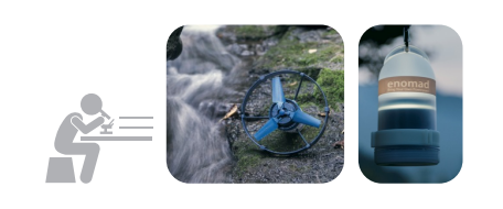 누구나 흐르는 물로 필요한 전력을 직접 생산, 저장 사용할 수 있다. 전기 회로에는 납을 사용하지 않고 100% 재생가능한 플라스틱 소재를 사용하 여 전과정에서 발생하는 환경적 영향을 최소화하기 위하여 설계, 제작하였다. 이는 캠핑 아웃도어 시장을 타겟으로 하여 기존 B2B 또는 B2G 중심의 에너지 시장을 B2C로 확장하는 새로운 접근으로 전세계의 주목을 받고 있다.