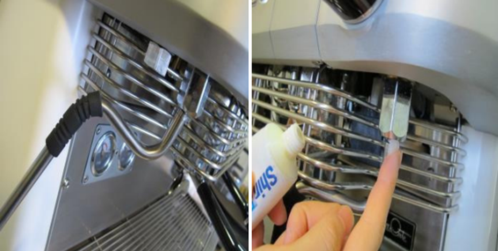 7) 커피음료에 영향을 주는 에스프레소 머신의 오염 범위를 세척한다.
