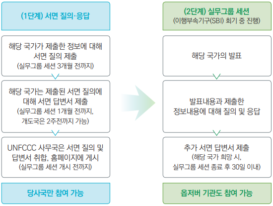 BTR을 통해 제출된 정보는 ‘기술전문가검토’ 과정을 거쳐 검증되며, 기술전문가 검토팀은 결과보고서를 통해 해당 국가가 개선해야할 사항 등을 권고한다. 이후에는 ‘촉진적 다자검토(FMCP)’를 통해 각 국의 BTR에 대한 공개 검토가 진행된다.