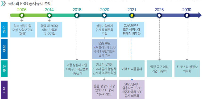 ● "유럽 및 일본을 비롯해 우리나라도 기업의 ESG 공시 의무화 추진 기조"