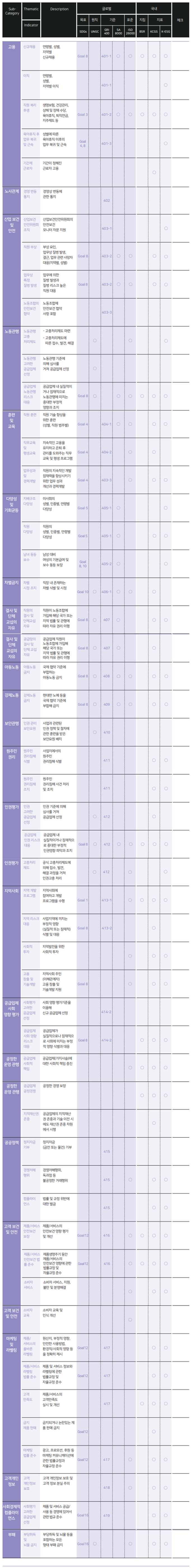 기업이 자사의 S 수준을 평가해볼 수 있도록 국내외 S 영역의 주요 가이드라인을 반영해 아래와 같 이 체크리스트를 구성했다.