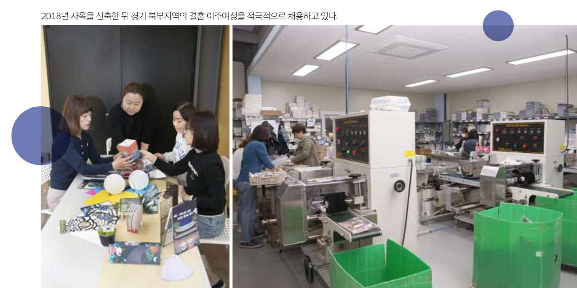 “지역사회에 공헌하는 데 목적을 두고 고용 취약계층을 주로 채용했어요. 그런데 생산량이 주문량을 따라가지 못하는 상황이 발생했습니다. 아무리 노력해도 원하는 만큼 개선되질 않았어요. 이때 고용하게 된 이주여성들이 이런 고민을 해결해준 거죠.”