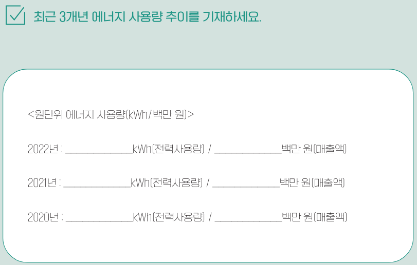 에너지 사용 현황, 관리 및 성과를 주기적으로 기록, 보관하고 외부에 공개해 환경보호를 위한 기업의 노력과 성과를 보여줘야 합니다.