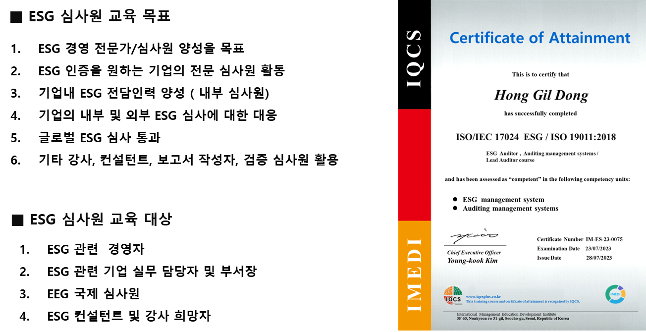 ISO/IEC 17024 ESG 심사원 자격증