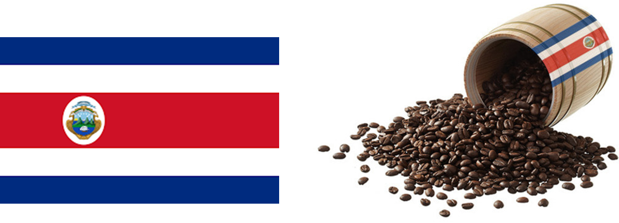 코스타리카 커피는 1779년 쿠바로부터 이식되면서 경작되기 시작하였다로부스타 커피의 경작을 불법 행위로 규정하는 등 엄격하지만 효율적인 커피 산업 정책으로도 유명하다. 연간 10만 톤 정도의 커피를 생산하고 있으며, 코스타리카 커피를 대표하는 것은 8곳의 지역으로 센트럴밸리(Valle Central), 타라주(tarrazu), 트레에스리오스(Tres Rios) 지역이 유명하다. 유기 농법으로 경작되어 생두의 크기는 크지 않으나 그 맛과 향은 최고급으로 평가된다. 주로 부드러운 신맛, 와인 맛이 나고 밸런스가 좋은 특징이 있다.