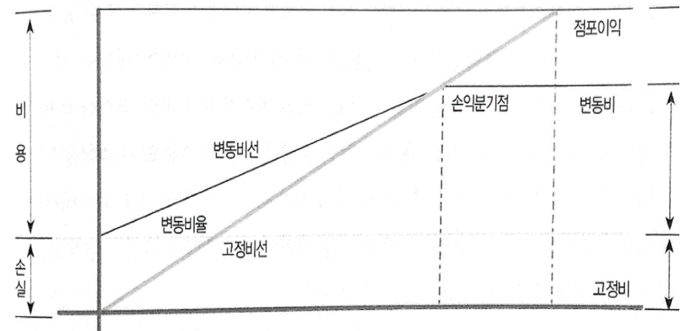 즉 매장의 매출액과 매출을 달성하기 위해 들어간 제비용이 일치하는 상태를 의미하며, 이때 매출액은 그대로인데 비용이 증가하면 적자, 비용은 그대로인데 매출액이 줄어도 적자가 된다.