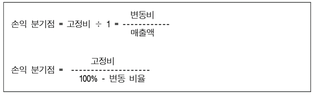매출액 = 변동 원가 + 고정 원가 + 영업 이익