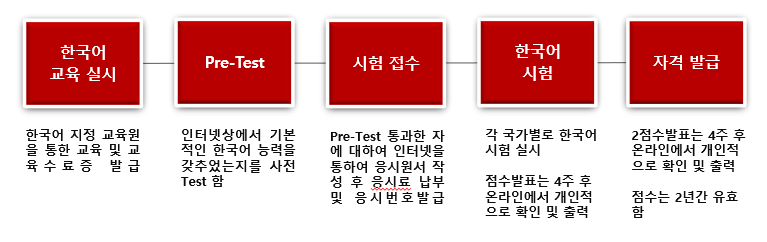 ISO/IEC 17024 한국어 시험은 Pre-Test, 본 시험으로 시행됩니다.  합격한 자를 대상으로 자격인증서을 발급하며, 교육은  ISO 인증 교육원  및 기관에서 실시하며, 교육을 이수한 자만이 시험에 응시 할 수 있고, 전 세계 167개국이 동시에 시험을 실시 합니다.