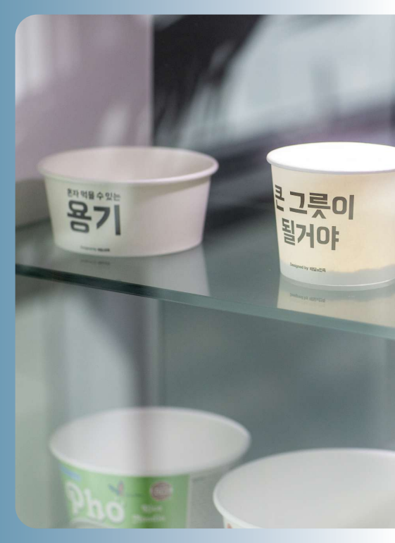 제품을 생산하고 남은 자투리 종이를 재활용 기업에 인계해 100% 재활용하고, 유기 용제를 포함하지 않은 100% 친환경 무용제 잉크로 제품 표면을 인쇄하는 것 역시 환 경보호를 실천하기 위한 현진제업만의 행보다. 친환경 가치를 실천하기 위한 노력은 여기서 끝이 아니다. 지속적인 연구개발 끝에 내수성을 위해 제품 내면에 코팅하는 폴리에틸렌(PE)을 인체에 무해하고 퇴비화가 가능한 수용성·생분해성 성분으로 바꾸는 데 성공했다. 현진제업은 올해 12월부터 이 같은 친환경 코팅제를 적용한 제품을 생산해 고객사에 납품할 계획이다.