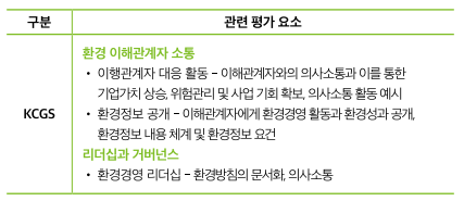 ▶ 이해관계자의 환경적 약속, 정책 및 성과에 대한 이해를 높이고 신뢰성과 파트너십을 구축하기 위해 정보를 공유하는 환경 의사소통을 명시