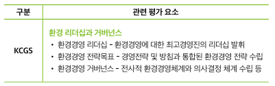 ③ ESG 관련지표 : 환경경영 - 리더십 전략 및 목표 등