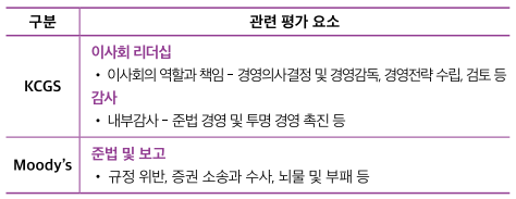 ③ ESG 관련지표 : 재무전략 및 위험관리, 금융 감독 등