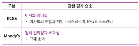 ③ ESG 관련지표 : 조직구조 - 리스크관리, 정책 신뢰성과 효과성 등