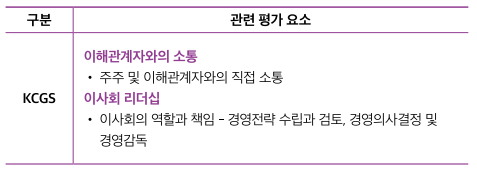 ③ ESG 관련지표 : 조직구조 - 기업 지배구조, 지속가능성장 추구 등