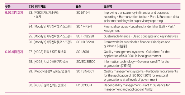 ③ ESG 관련지표 : 재무회계 - 회계(기업지배구조), 재무전략 및 리스크 관리 등