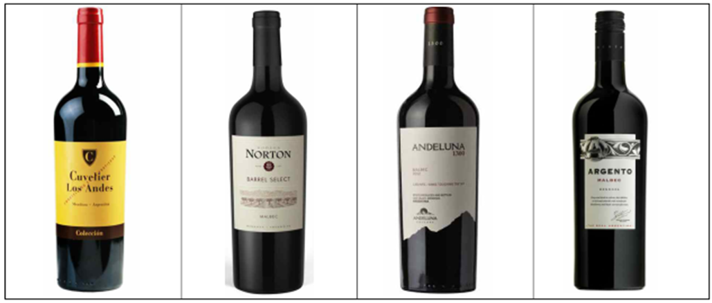 레드 와인 ; 말벡, 까베르네 쏘비뇽, 크리올라(Criolla), 보나르다(Bonarda), 산지오베제(Sangiovese), 세레사(Cereza).