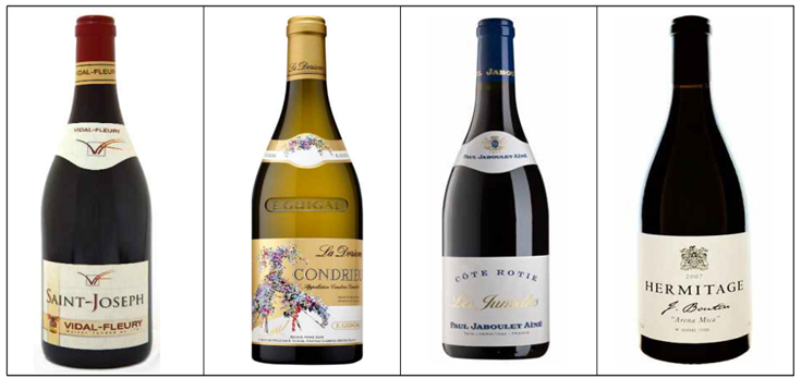 대표적 와인 산지는 론(Rhone) 강의 상류 지역으로 포도 재배 지역이 산의 경사면에 주로 위치하여 토양이 척박하다. 거친 환경 속에서 생산된 포도는 개성이 강하여 와인의 색, 향, 맛이 화려하고 진하며 붉은 과일의 맛과 향이 강렬하다. 와인의 맛과 향이 강하므로 소스가 강하지 않은 음식과 어울린다.