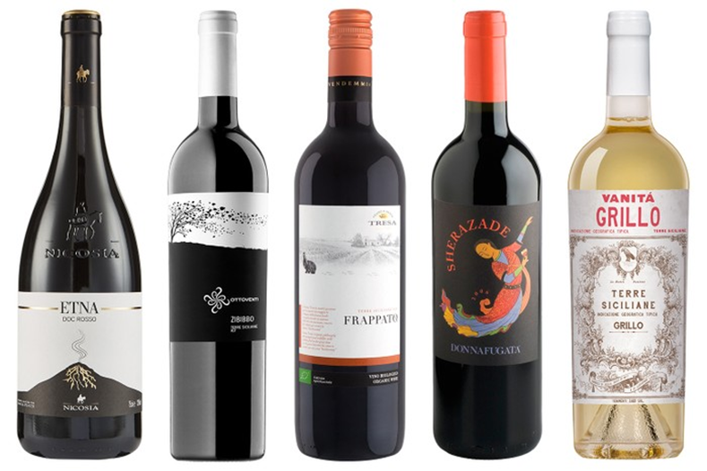 시칠리는 뿌글리아(Puglia)와 더불어 거대한 와인 생산 지역이다. 많은 포도들은 지방 요리에 사용하는 건포도로 만들어지며, 시칠리아 포도들은 또한 포도들의 높은 집중을 요구하는 디저트 와인들을 창조하는 데 큰 역할을 하며, 더 적은 양으로 소비된다.