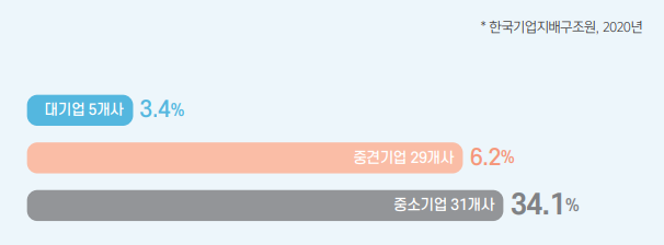 기관투자자는 주요 외부통제 주체로서 투자기업의 불건전한 지배구조로 인해 기업가치가 저해될 경우 경영진 교체, 독립 감사 선임, 주주환원 확대 요구 등을 통해 기업지배구조 개선에 중요한 역할을 담당한다. 하지만 우 리나라 중소·중견기업은 기관투자자들의 보유지분이 적어 경영자 또는 지 배주주를 효율적으로 견제할 수 있는 모니터링 기능이 부족한 상황이다.