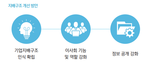 건전한 지배구조 확립은 ESG활동을 통한 기업가치 및 성과개선에도 긍정 적으로 작용한다고 할 수 있다. 기업지배구조가 건전할수록 기업경영이 합 리적으로 수행되며, 이에 대한 투자자들의 평가가 상승하여 총체적으로 기 업가치 제고에 도움이 되기 때문이다.